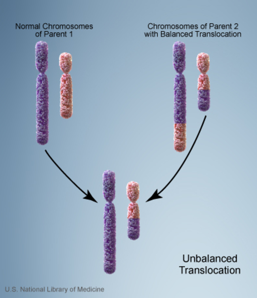 Less commonly, individuals with a 9q22.3 microdeletion inherit the chromosomal change from an unaffected parent. In these cases, the parent carries a chromosomal rearrangement called a balanced translocation, in which a segment of chromosome 9 has traded places with a segment of another chromosome. No genetic material is gained or lost in a balanced translocation, so these chromosomal changes usually do not cause any health problems. However, translocations can become unbalanced as they are passed to the next generation. People who inherit a 9q22.3 microdeletion receive an unbalanced translocation that deletes genetic material from one copy of the q22.3 region of chromosome 9 in each cell.