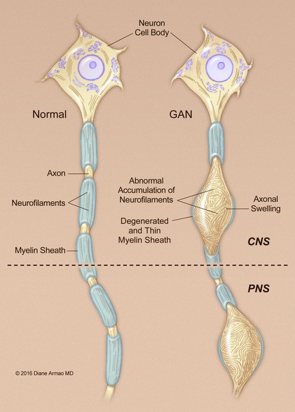 - Opal P. GAN-Related Neurodegeneration. 2003 Jan 9 [updated 2021 Oct 14]. In: Adam MP, Feldman J, Mirzaa GM, Pagon RA, Wallace SE, Amemiya A, editors. GeneReviews(R) [Internet]. Seattle (WA): University of Washington, Seattle; 1993-2024. Available from http://www.ncbi.nlm.nih.gov/books/NBK1136/ Citation on PubMed