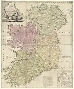 In rural Ireland, there was a "varied, energetic and complex structure of agrarian 'secret societies'", commonly referred to as Whiteboyism, after groups that had emerged mid-century in the south.[34] In the north, it had included the Oakboys who, mobilising the aggrieved irrespective of religion, had in 1763 threatened to pursue fleeing Anglican rectors and tithe proctors into the city of Derry.[35] There had also been the Hearts of Steel who, protesting land speculation and evictions, in 1770 entered Belfast, besieged the barracks, and sprung one of their number from prison.[36] By the 1790s, borrowing, like the United Irish societies (and, from 1795, their nemesis the Orange Institution), from the lodge structure and ceremonial of freemasonry,[37][38] this semi-insurrectionary phenomenon had regenerated as the largely but—with some latter-day adjustments to their oaths—not exclusively Catholic, Defenders.[39]:467–477