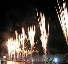 Australian singer Delta Goodrem sang Together We Are One, the theme song for the 2006 games while many fireworks were ignited, within the stadium, on the backs on roller-bladers circling the singer, and fireworks were also ignited on the banks of the Yarra, as well as the floating pontoons, and Melbourne's larger skyscrapers.