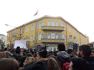 Thousands of students across Tirana boycotted the lessons and marched from their faculties towards the Ministry of Education, Youth and Sports' Building demanding the Ministry to cut of the tuition fees and the annulment of the government's decision on the additional fee for resit exams, together with other requirements like better living conditions in dormitories and a bigger involvement of students in the decision-making process. It was the biggest protest the country had seen in years.[2]