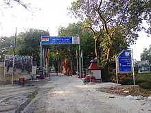 Agartala (/ˌʌɡərtəˈlɑː/, Bengali: [agorot̪ɔla] , Kok Borok: [agaratala])[6] is the capital and the largest city of the Indian state of Tripura, situated on the banks of Haora River, about 2 kilometres (1.2 mi) east of the border with Bangladesh[7] and about 2,499 km (1,552 mi) from the national capital, New Delhi.[8] According to 2022 census,[9] Agartala is the third largest city after Imphal metropolitan in Northeast India. It is India's third international internet gateway and being developed under the Smart Cities Mission .[10]