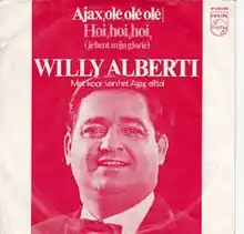 "Ajax, Olé Olé Olé" is a Levenslied song by Willy Alberti sung with the Supporters of the Dutch association football club AFC Ajax from Amsterdam who were credited as the Ajax choir. The single was released on Philips Records in 1969.[1] The song is the A-side to the record "Ajax, Olé Olé Olé / Hoi, Hoi, Hoi, (Je bent mijn glorie)" which was released as a 7"-single.[2]