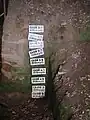 Section (2005): Rock bottom of the cave. Starting about 350,000 years ago. Layer 9: 350,000 BC; Layer 8: 350,000-300,000 BC; The cave was not habitable and was filled with water. Layer 6/2, 6/1: About 250,000 years BC. Tools were found showing Neanderthal habitation; Layer 5/2, 5/1: 112,000 years BC. First level of long-term habitation of Neanderthal people. Layer: 4/2, 4/1: 70,000 years BC. Second level of long-term habitation of Neanderthal people. Layer 3: 40,000 years BC. Late Paleolithic. Stone object of possible Cro-Magnon culture.[1]
