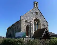 The 19th century was characterised by "an unprecedented upsurge" in the provision of new Anglican churches and the expansion of existing buildings, prompted by an increase in the competing attractions of Nonconformist denominations, a "quickening of religious feeling" in general and the huge increase in the population of towns.[52] In some cases vast rural parishes were subdivided; in others, chapels of ease were provided in outlying rural areas distant from their parish church. Victorian restoration of old churches took place across the district and was particularly extensive at Hailsham, Selmeston and Uckfield, where the buildings are now essentially 19th-century. The era of large-scale churchbuilding (as opposed to restoration) in Wealden began in the late Georgian era with the opening of a new church in Frant, built between 1819 and 1822.[53] The year 1836, just before Victoria's reign started, was significant: William Moseley was responsible for new churches in Forest Row and Hadlow Down that year (although the latter was greatly reworked in 1913);[53] and Danehill, a main-road village in Fletching parish, also received its first chapel of ease in 1836. The present church of 1892 is by Bodley and Garner.[54] It is the Victorian era that is most associated with the increase in churchbuilding activity, though.[55] A church in the outlying part of Withyham parish close to the growing town of Crowborough opened in 1839.[56] Four years later, a church was completed at Upper Dicker in Arlington parish;[57] and prolific architect Richard Cromwell Carpenter's church at Nutley dates from 1845.[58] The churches at Eridge and Tidebrook date from 1852[59] and 1856 respectively.[60] James Piers St Aubyn designed a chapel of ease at Cross-in-Hand, the main settlement in Waldron parish, in 1863–64.[54] A former school was converted into a chapel of ease in Mark Cross, part of Rotherfield parish, in 1873, although it was soon granted its own parish.[61][62] A year later, work began on a church for the rapidly growing village of Polegate,[63] and a church was built to serve the village of Horam in 1890.[64] Endowments by rich benefactors allowed churches to be built at High Hurstwood (1872)[64] and Hammerwood (1880).[65] The wealthy Vicar of Brighton Arthur Wagner, who had a house in Buxted and established a convent there, also paid for the construction of a second church for the village in 1885–86.[66] Fairwarp's church, designed in 1881 by Major Rohde Hawkins, was substantially extended in the 20th century, funded by the Eckstein baronets.[67] Churches continued to be built throughout the 20th century. Examples include Blackham (1902),[61] Jarvis Brook (1906),[68] Colemans Hatch (1913, by Arthur Blomfield),[69] Heathfield town (1915),[70] Bodle Street Green (1923, replacing a fire-damaged one),[71] Stone Cross (1924; a chapel of ease in Westham parish),[72] Alderbrook (1957),[73] Broad Oak (1959),[70] Lower Willingdon (1962)[74] and Pevensey Bay (1968, replacing one of 1881).[75] In the east of Uckfield a tin tabernacle erected in 1904 was replaced by a combined church and sheltered housing development in 1971.[76]