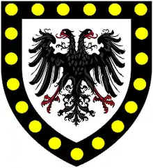 - ↑ The bezantée bordure indicates a connection to the ancient Earls of Cornwall(See Martin Lister-Killigrew's History of the Killigrew Family : "What their arms were before is uncertain, but from ye Heralds Office we know that in the time of Rchard Duke of Cornwall, brother of Henry III, and King of the Romans, he gave to Ralph de Killigrew the spread eagle, with the border of Cornwall, which undeniably denotes the family to be of consideration, so high back as those antient times"