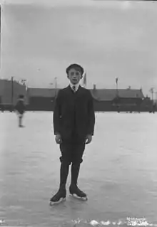 ![]() Andreas Krogh at Bislett Stadion, Kristiania (later Oslo) 24. January 1909. | |||||||||||||||