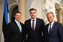 Andrej Plenković (pronounced [ǎndreːj plěːŋkoʋitɕ] (ⓘ); born 8 April 1970) is a Croatian politician who has been serving as the prime minister of Croatia since 19 October 2016. He was previously one of eleven Croatian members of the European Parliament, serving from Croatia's accession to the European Union in 2013 until his resignation as MEP when he took office as prime minister.[1] Plenković has also been serving as the president of the Croatian Democratic Union since 2016.[2]