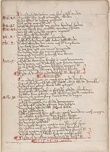 In addition to the three printed books of refrains, the poetry of Anna Bijns has been handed down through 18 manuscripts. Of these, 17 are collective manuscripts in which Bijns' work is featured alongside that of other authors. The only exception to this is manuscript B in the Ghent University Library (signature: Ghent, UB, 2166) that only contains work by Anna Bijns. The refrains in these manuscripts span a period from before the first publication of her work until the period 1545 and cover a wider area of themes than the printed refrains.[2]