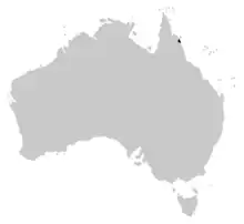 This species was first discovered in 1976 and is known from four localities: Alexandra Creek, Hilda Creek (Cape Tribulation NP), Roaring Meg Cascades, and Mossman Bluff Creek (Daintree NP), north-eastern Queensland—between 640 and 1,000 m (2,100 and 3,280 ft) in altitude—and the historical extent of the species only was 120 km2 (46 sq mi). Despite once being relatively common, the armoured frog has fallen into rapid decline, and was not seen from 1991 until 2008, when a small population was rediscovered and confirmed to be of this species.[3][4]