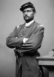 When the Civil War began, Ellis was living in New Windsor, New York. He joined the 71st New York State Militia as a captain and accompanied the regiment to Washington, D.C., where it became part of the newly organized Army of Northeastern Virginia under Brig. Gen. Irwin McDowell. Ellis saw his first combat action at the First Battle of Bull Run. He was then asked by Charles H. Van Wyck to help train the 56th New York Volunteer Infantry, a three-years' volunteer regiment.[3] On September 5, 1862, Ellis became the first colonel of the newly raised 124th New York Infantry.[4] The regiment had been recruited from mainly Orange County. After training and drilling, the 124th joined the Army of the Potomac in Northern Virginia.[5]