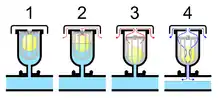 Small automatic valves are available to fit individual radiators. As these need to operate in any orientation, they use a different mechanism rather than a float. The hygroscopic vent system uses hygroscopic cellulose fibre discs.[7] These are small discs of material that expand when wet and shrink if warm and dry. A dry valve acts as an air vent until a dribble of water passes through it and swells the cartridge. If the valve dries out again, it re-opens. A characteristic of these valves is that they function best on the hot delivery side of a radiator and may not open as vents unless the water supply is hot.[8]