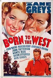 Born to the West (reissue title Hell Town) is a 1937 American Western film starring John Wayne, Marsha Hunt, and John Mack Brown. Filmed in black and white and based upon a Zane Grey novel, the movie incorporates footage from an earlier and higher budgeted silent version, a common practice of the era. The picture features fast chases, gun-fights, unusual poker gambling, and peppy light dialogue for the love interest.