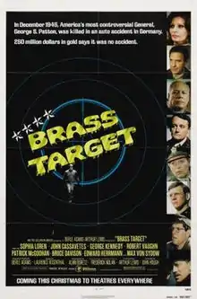 Brass Target is a 1978 American suspense war film based on the 1974 novel The Algonquin Project by Frederick Nolan.[2] The film was produced by Berle Adams and Arthur Lewis and directed by John Hough.[3] It stars Sophia Loren, John Cassavetes, Robert Vaughn, George Kennedy, Patrick McGoohan and Max von Sydow.[4]