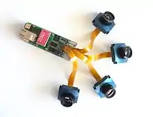 A camera module is an image sensor integrated with a lens, control electronics,[1] and an interface like CSI, Ethernet or plain raw low-voltage differential signaling.