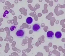 | Differential diagnosis | Acute leukemia, lymphoma, leukemoid reaction, circulating immature cells from chemotherapy, circulating endothelial cells, megakaryocytes or osteoclasts |