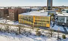 In 2021, Carleton completed construction on the Nicol Building, the new home of the Sprott School of Business. Located in the heart of Carleton's campus, the Nicol Building was designed by Hariri Pontarini Architects and provides 115,000 square feet of new, collaborative learning space.[38] The cost of the building was estimated at around $65 million, but was offset through a sizeable donation of $10 million from the late Ottawa real estate developer Wes Nicol, for whom the building is namesake.[39]