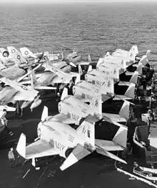 Carrier Air Wing Seventeen (CVW-17) was established on 1 November 1966 and assigned to USS Forrestal. Although an Atlantic Fleet carrier, Forrestal's first deployment with CVW-17 was to Vietnam, from June to September 1967. After only four days on the line with 150 sorties flown, a Zuni rocket was accidentally fired on the flight deck on the morning of 29 July 1967. It hit the fueled and armed aircraft. In the resulting fire 134 crewmembers were killed and 161 injured. 21 aircraft were destroyed and 40 were damaged.[3]