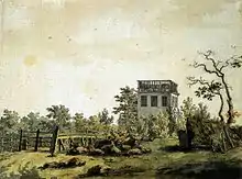 Friedrich was acquainted with Philipp Otto Runge, another leading German painter of the Romantic period. He was also a friend of Georg Friedrich Kersting, and painted him at work in his unadorned studio, and of the Norwegian painter Johan Christian Clausen Dahl (1788–1857). Dahl was close to Friedrich during the artist's final years, and he expressed dismay that to the art-buying public, Friedrich's pictures were only "curiosities".[34] While the poet Zhukovsky appreciated Friedrich's psychological themes, Dahl praised the descriptive quality of Friedrich's landscapes, commenting that "artists and connoisseurs saw in Friedrich's art only a kind of mystic, because they themselves were only looking out for the mystic ... They did not see Friedrich's faithful and conscientious study of nature in everything he represented".[33]