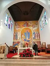 Suggestions for the mix of the Serbian Orthodox motifs in the Catholic church came from France Perko (1929-2008), the archbishop of Belgrade from 1986 to 2001, who wished to show that Belgrade is the meeting point of the West and the East. The church remains the only Catholic cathedral with the image of Saint Sava at the altar.[4]