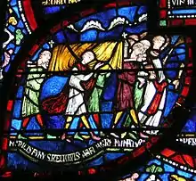 According to another tradition not now considered obligatory in the Roman Rite, the feet of all Christians both before the altar and in the grave should be pointed to the East. This custom is alluded to by Bishop Hildebert at the beginning of the 12th century,[21] and its symbolism is discussed by Guillaume Durand. "A man ought so to be buried", he says, "that while his head lies to the West his feet are turned to the East..."[22]