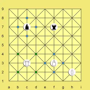 - ↑ This could be described as the "inverse" of the move of a horse in xiangqi.