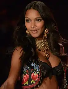 Lais Ribeiro at a Victoria's Secret fashion show. Lingerie manufacturers controlled and constructed the conventional bustline of the 1990s.[227] In their heyday, Wonderbra sponsored a National Cleavage Day in South Africa every year,[228][229] and the webcast of the Victoria's Secret fashion show became one of the Internet's biggest events.[230]
