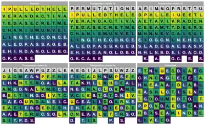 - ↑ Lasry, George; Kopal, Nils; Wacker, Arno (2014-07-03). "Solving the Double Transposition Challenge with a Divide-and-Conquer Approach". Cryptologia. 38 (3): 197–214. doi:10.1080/01611194.2014.915269. ISSN 0161-1194. S2CID 7946904.