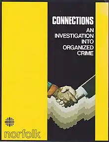 Connections: An Investigation into Organized Crime in Canada consisting of two television documentary programs broadcast as a CBC/Norfolk Communications Ltd coproduction transmitted by the Canadian Broadcasting Corporation in two 90-minute segments on successive nights: Sunday, June 12 and Monday, June 13, 1977.