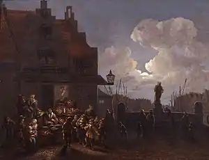 Cornelis Snellinck painted a number of landscape scenes set at night. This includes the Fruit market in Rotterdam, at night (Museum Rotterdam) and the Journey of the three magi to Bethlehem (Musée de la Ville de Poitiers).[7][8]