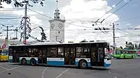 Crimean Trolleybus Line (Russian: Крымский троллейбус, romanized: Krymskiy trolleybus; Ukrainian: Кримський тролейбус, romanized: Kryms’kyi troleibus; Crimean Tatar: Qırım trolleybusı) in Crimea is the longest trolleybus line in the world.[1][2] It is 86 kilometres (53 mi) long,[3] between the capital of Crimea, Simferopol, and the coastal city of Yalta on the Black Sea.