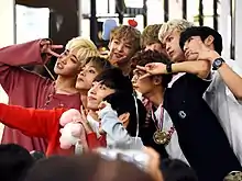 D-Crunch was among 18 vocalists from various genres that participated in a music video entitled "Crown for Korea". It was released on March 25, 2020, amidst the COVID-19 pandemic and was compared to the charity single "We Are the World". Speaking on the project, director Kwon Woo-ki expressed his intentions to "give courage to everyone living in this land that they would be crowned winners if they could keep their values and overcome this period".[50] D-Crunch also partnered with the Gangnam District to produce content for a video series aimed to lift viewers out of "corona depression" by teaching them K-pop choreography.[51] Entitled "K-pop Home Care", they provided dance instructions for Exo's "Tempo".[52] D-Crunch also joined the Sports Doctors Relay Support Campaign and sent messages of encouragement to medical workers and citizens.[53]