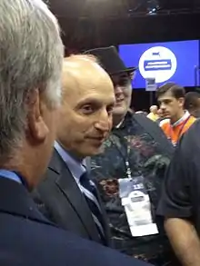 Wolf has been a vocal critic of the Supreme Court's ruling in Citizens United v. FEC, and published an op-ed piece emphasizing the distinction between people and corporations.[32] Wolf reiterated his opposition to corporate personhood at breakfast event in his campaign for governor, joking: "Cape Air and my daughters [are about] the same age... I've never actually confused my daughters for Cape Air."[33] A supporter of adopting a constitutional amendment to overturn the Supreme Court decision, Wolf co-sponsored and voted for a resolution to do so.[34][35] As a guest speaker at a Brookings Institution's summit on Citizens United increase in political spending in 2016, Wolf said a constitutional amendment was vital for changing the political status quo.[36]