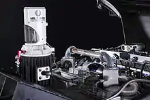 Three DeLoreans used were purchased from a collector—one for stunts, one for special effects, and one for normal shots.[29][31] They were unreliable and often broke down.[23] 88 mph (142 km/h) was chosen as the time travel speed because it was easy to remember and looked "cool" on the speedometer.[32] A custom speedometer was built to simulate 88 mph, as a 1979 law passed by then-President Jimmy Carter had limited speedometers to 85 mph to reduce speeding.[30] The Flux Capacitor, necessary for time travel, was called the Temporal Field Capacitor; Zemeckis said the name was not believable. From his work on the 1979 drama The China Syndrome, Fink had learned of Neutron flux. He and Zemeckis simultaneously suggested renaming it the Flux Capacitor. Cobb and Probert had already placed the Flux Capacitor on the external and interior roof of the DeLorean. Fink placed it next to the driver.[28] Fink constructed the device using a NEMA box and backlit Torr High-Voltage relays. The time display was constructed from LMB boxes. When Fink left, he picked Michael Scheffe to replace him. Scheffe finished the Flux Capacitor build and built the "Mr. Fusion" replacement power supply out of a Krups coffee grinder.[28]