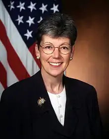 President George W. Bush nominated Etter as Assistant Secretary of the Navy (Research, Development and Acquisitions) on September 6, 2005, and she subsequently held this office from November 7, 2005, until November 15, 2007.[5][6] In this capacity, she was senior acquisition executive for the United States Navy and the United States Marine Corps and the Navy's representative for joint acquisitions with other branches of the United States Armed Forces (for example: the F-35 Lightning II and the MRAP). She was responsible for the Navy and Marine Corps' acquisition of ships, aircraft, vehicles, and information technology. The Dr. Delores M. Etter Top Scientists and Engineers award was named for her.[7]