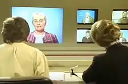 ![]() Diana Gould speaking to Margaret Thatcher (right) and Sue Lawley, in the BBC's Lime Grove Studios, 24 May 1983 | |