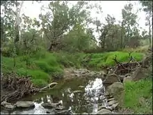 The native vegetation of Doncaster East has been almost totally cleared, notable exceptions being the north-east of the suburb around the Mullum Mullum Creek, where small areas of native riparian bushland remain. Many small areas of Pine Trees were planted by early German settlers[3] and can be found all over the suburb, particularly around George and Victoria Streets and to the south-east, the presence of these pine trees can serve as a good indicator of historical property boundaries and further may be present in the nature reserves and parks that populate the region. Invasive species remain as one of the suburbs major environmental problems.