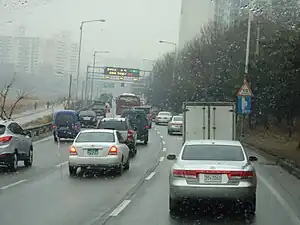 Dongbu Expressway (Korean: 동부간선도로) is an urban expressway located in Gyeonggi and Seoul, South Korea. With a total length of 32.5 km (20.2 mi), this expressway starts from the Bokjeong Interchange in Songpa District, Seoul to Sangchon Interchange in Uijeongbu City, Gyeonggi.
