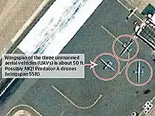 Pakistan's government publicly condemned these attacks.[36] However, it also allegedly allowed the drones to operate from Shamsi Airfield in Pakistan until 21 April 2011.[37] According to leaked diplomatic cables, Pakistan's Army Chief Ashfaq Parvez Kayani not only tacitly agreed to the drone flights, but in 2008 requested that Americans increase them.[38] However, Pakistan's Interior Minister Rehman Malik said, "drone missiles cause collateral damage. A few militants are killed, but the majority of victims are innocent citizens."[39] The strikes are often linked to anti-American sentiment in Pakistan and the growing questionability of the scope and extent of CIA activities in Pakistan.