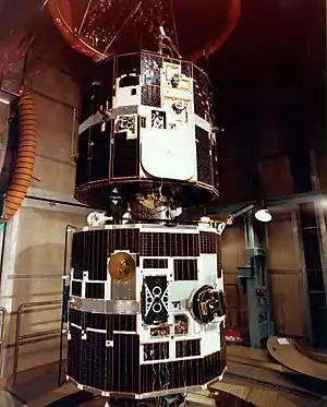 Dynamics Explorer 1 (DE-1 or Explorer 62) was a NASA high-altitude mission, launched on 3 August 1981, and terminated on 28 February 1991. It consisted of two satellites, DE-1 and DE-2, whose purpose was to investigate the interactions between plasmas in the magnetosphere and those in the ionosphere. The two satellites were launched together into polar coplanar orbits, which allowed them to simultaneously observe the upper and lower parts of the atmosphere.[2]