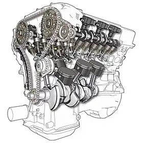 V engines (also known as "Vee engines") have the cylinders aligned in two separate planes or 'banks', so that they appear to be in a "V" when viewed along the axis of the crankshaft. Types of V engines include: