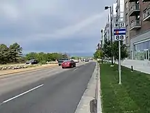 SH 88 is an original 1920's highway that originally ran along Belleview from Broadway to Parker Road in Greenwood Village. In 1939, it was extended east along Quincy Avenue into the now defunct Lowry Field Bombing Range until 1954, when the bombing range was decommissioned.[1] The western extension to Santa Fe (US 85) was completed by 1956. In 1959, the section along Arapahoe road was added, originally as a gravel road and it wasn't paved until 1961. The section of Federal Blvd in Sheridan was originally signed as SH 75 and was renumbered to SH 88 in 1968. Arapahoe Road didn't become an expressway until it was built east to Peoria Street in 1977 and the final stretch to SH 83 (Parker Rd.) wasn't finished until 1990. The intersection of Arapahoe Road and Parker Road used to have a triple left going from eastbound to northbound and was one of the most congested intersections in the Denver Metro Area. It was later upgraded to an interchange where Parker Road now continues north without stopping. The interchange was completed in 2012.[1]