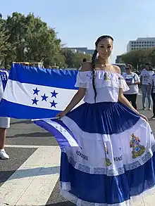 National flag and woman wearing national colours at the Fiesta DC 2019 Parade.