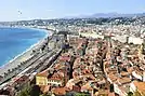 Officially, the French Riviera is home to 163 nationalities with 83,962 foreign residents,[4] although estimates of the number of non-French nationals living in the area are often much higher.[5] Its largest city is Nice, which has a population of 340,017 as of 2017.[6] The city is the centre of a métropoleNice-Côte d'Azur—bringing together 49 communes and more than 540,000 inhabitants and 943,000 in the urban area. Nice is home to Nice Côte d'Azur Airport, France's third-busiest airport (after Charles de Gaulle Airport and Orly Airport), which is on an area of partially reclaimed coastal land at the western end of the Promenade des Anglais. A second airport at Mandelieu was once the region's commercial airport,[7] but is now mainly used by private and business aircraft.[8]