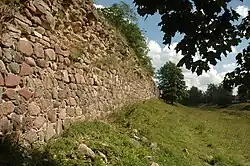It was first mentioned in the beginning of the 14th century, as an outpost guarding the city of Pskov.[2] Between 1431 and 1434, Pskovians built a fortress there,[2] the remains of which can still be seen. It was attacked on numerous occasions by the Swedes and the Polish-Lithuanian Commonwealth[2] (e.g., during the Russo–Swedish War (1590–1595) and the Ingrian War), and captured by the Swedes in 1614, but was finally returned to Russia in 1617 according to the Treaty of Stolbovo.[14]