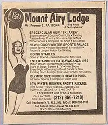 Girl with Ball was inspired by a 1961 advertisement for the Mount Airy Lodge in the Pocono Mountains.[1] The ad, which started running in 1955, was widely published in the New York metropolitan area and elsewhere, including several prominent newspapers such as The New York Times and the Daily News.[2] The advertisement was still running in newspapers more than twenty years after Lichtenstein produced the work.[3]