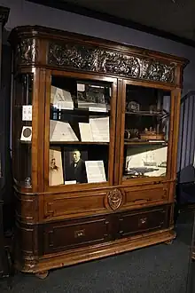 Cabinet at Monmouth Museum made of the wreckage of the Foudroyant and containing objects also made from the ship.