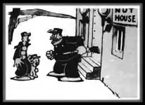 "I Was Killing When Killing Wasn't Cool" was among the first of Columbia's comics to conspicuously show the influence of the animated cartoons of Fleischer Studios, particularly the Out of the Inkwell series with Koko the Clown and dark, surreal shorts such as Bimbo's Initiation and Swing You Sinners!. The story's dense layout, which fits as many as 32 small panels into each page, creates a strong sense of visual rhythm similar to that of the Fleischer films.[5] Also, its two color palette, which is restricted to copious fluorescent orange and small amounts of brown, recalls the look of the studio's Cinecolor Color Classics shorts of the 1930s.[6] Columbia explicitly acknowledges the Fleischer influence at the end of the story, offering them his "sincerest apologies."