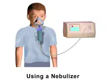 Nebulizers are designed to deliver medications over an extended period of time over multiple breaths through a mouthpiece or face mask. They generate a continuous mist with aerosolized medication, allowing a patient to breathe normally and receive medications.[11] They are commonly used in infants and toddlers requiring inhaled medications or in patients in the hospital who require inhaled medications.[2]