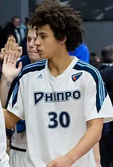 Sanon was unable to compete for the Ukraine under-16 basketball team in 2015, due to an appendix injury.[26] An ankle injury, as well as a lack of official documentation, also prevented him from joining.[3] He made his junior national team debut for Ukraine, at the 2017 FIBA Europe Under-18 Championship, in Slovakia.[27][28] In seven games played, in a span of just over a week, he averaged 19.3 points, 6.1 rebounds, 2.7 assists, and 3.4 steals per game, leading his team to a 12th place finish at the tournament.[27][2] Sanon was named All-European Championships U18 Honorable Mention by the basketball website Eurobasket.com.[13] Entering the event as a little-known prospect, even in his home country, his unexpected success in Slovenia catapulted him into NBA draft consideration.[26][29] He was subsequently considered a top-10 prospect at the event, according to ESPN.[3]